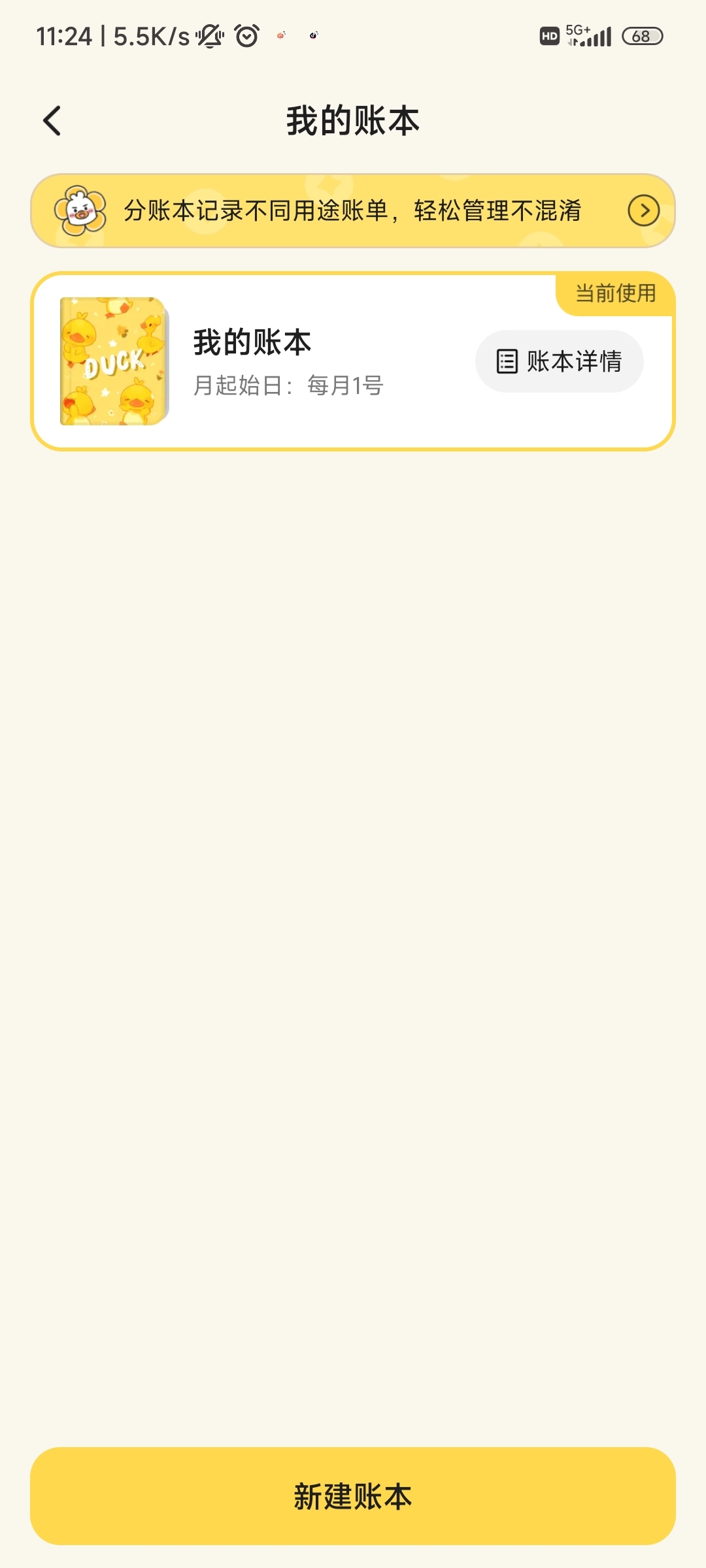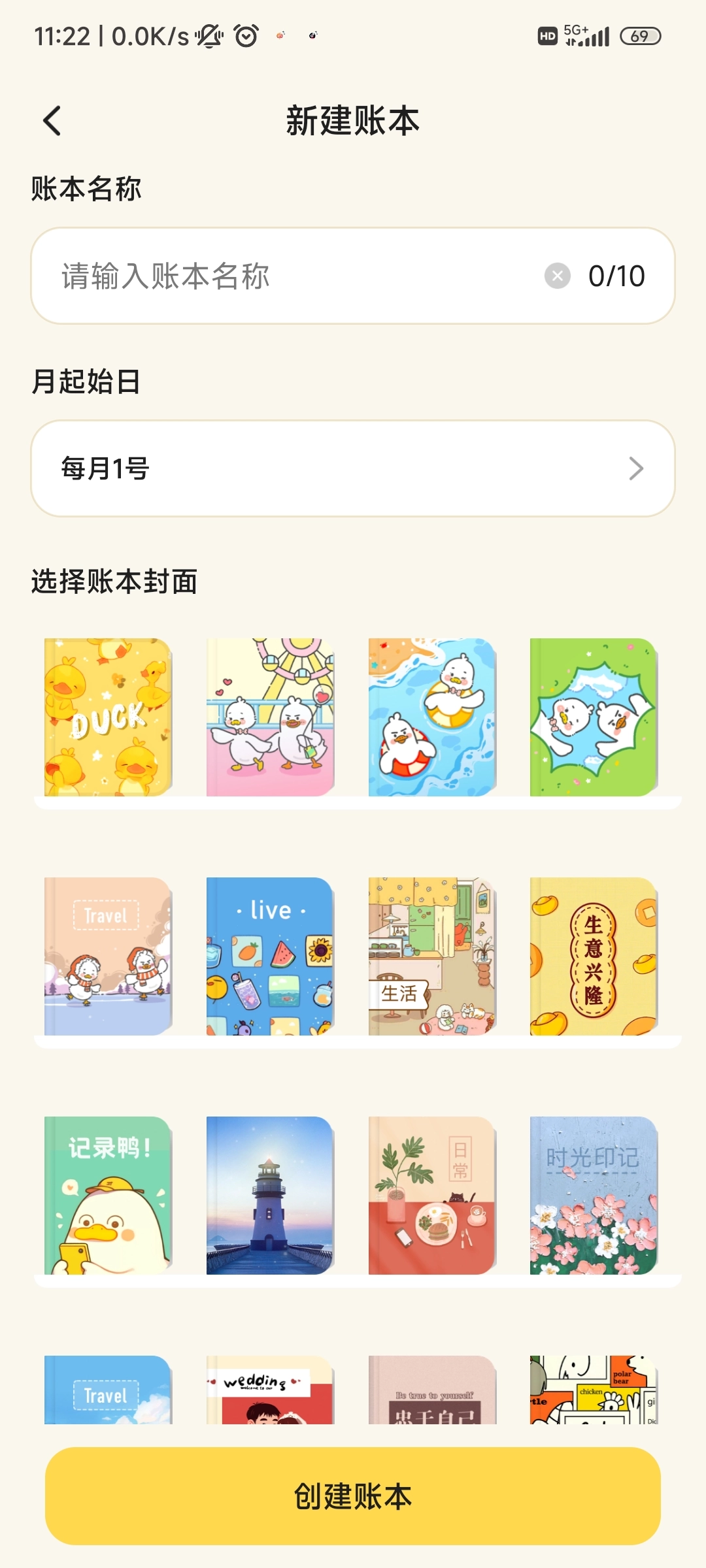 9、接着返回,点击【新建账本】,按照自身需求进行填写或选择,随后点击【创建账本】就行。