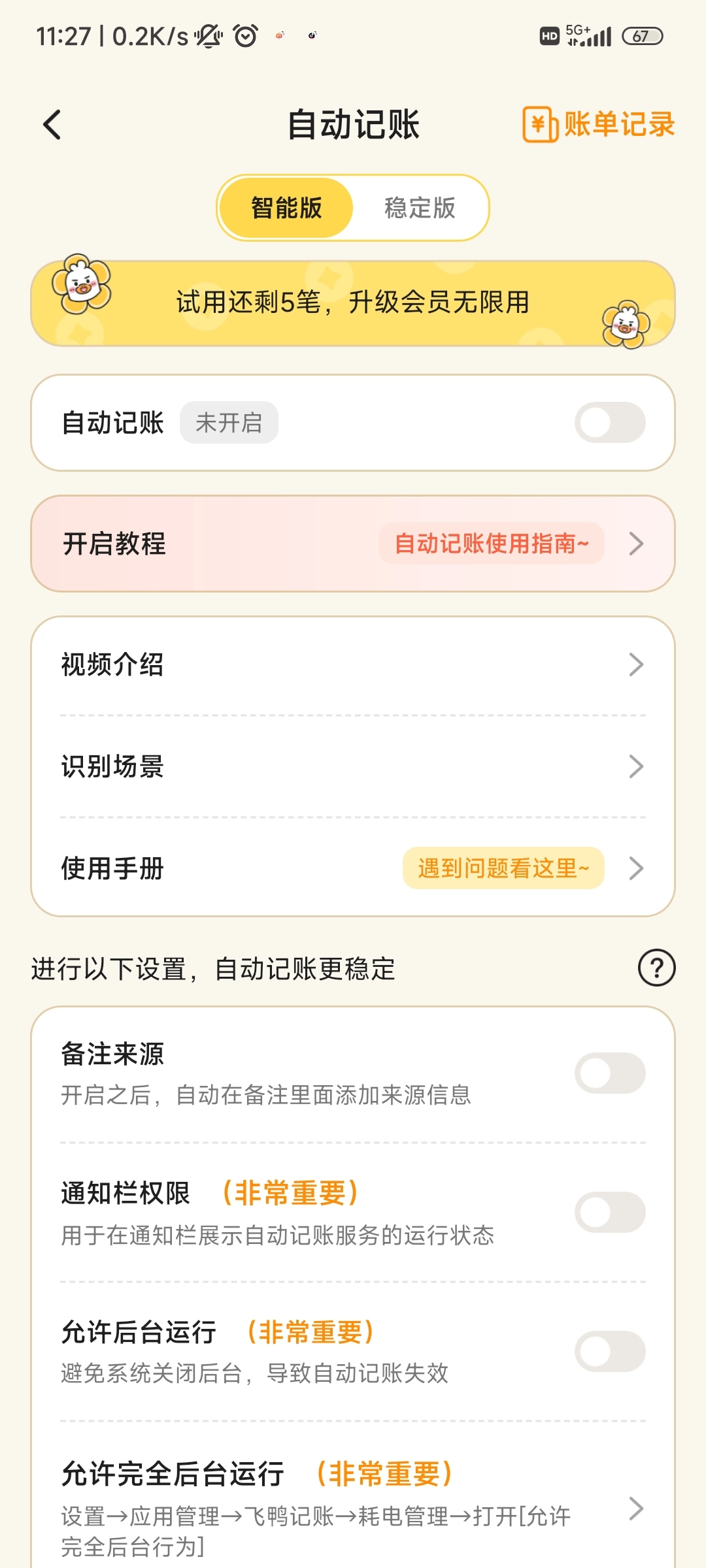 5、还可以点击聊天页面下的【自动记账】,可以根据教程开启自动记账